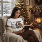 Slide into the Shhh... I'm Reading Holiday Tee and instantly settle into your favorite armchair. Made from a premium, ultra-soft cotton blend, it feels like a familiar, comforting presence—a perfect match for the cozy, festive scene printed right on the front.