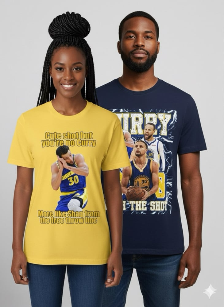 Calling all Stephen Curry fans—this one's for you. This casual Gildan t-shirt comes in bold blue and yellow and features the iconic phrase “Curry with the shot” alongside the legendary number 30. Made with soft, durable cotton, it’s perfect for repping your favorite shooter on game day, at the gym, or just out and about. Comfortable, clean, and full of Curry energy—this tee is a slam dunk.